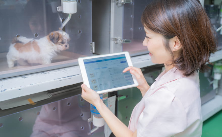 言葉を持たないワンちゃん・ネコちゃんを相手にしている私たちにとって、一番重要なのはどんな変化でも見逃さない「観察力」です。看護スタッフと協力し、表情や仕草の小さな変化から体調を読み取り、いち早く治療に移せるように心がけています。