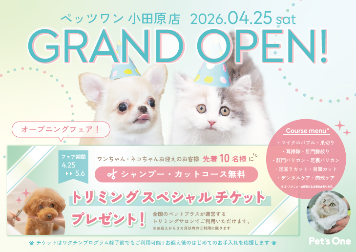 2026年4月25日(土) ペッツワン 小田原店 GRAND OPEN!